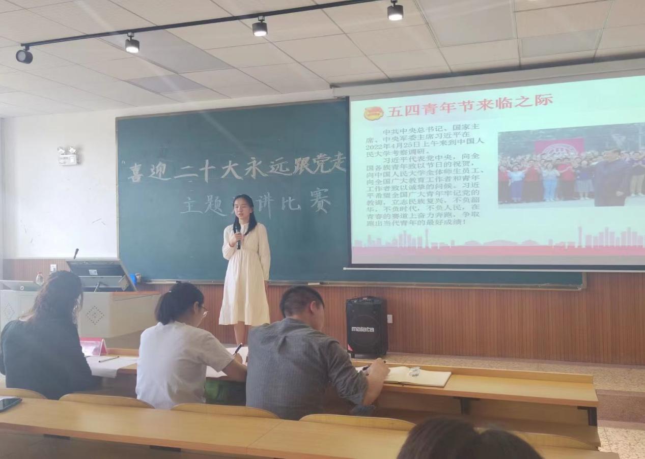 本次“喜迎二十大,永远跟党走”主题演讲比赛,参赛者不仅表达了“永远跟党走,奋进新征程”的坚定信念,也展现了“青春之国家,青春之民族”的爱国情怀。希望各位同学们将爱国爱党深深刻入心中,弘扬红色精神,在这个新时代里永远跟党走,为实现中华民族伟大复兴努力奋斗。