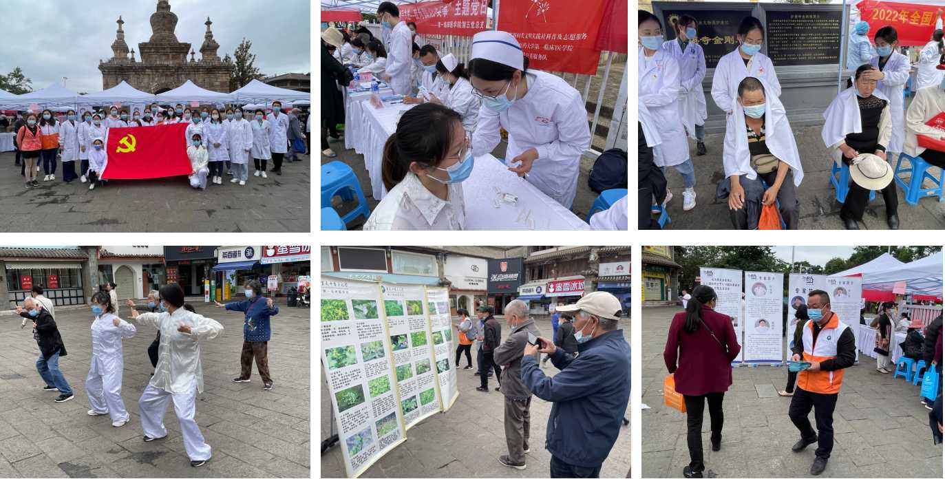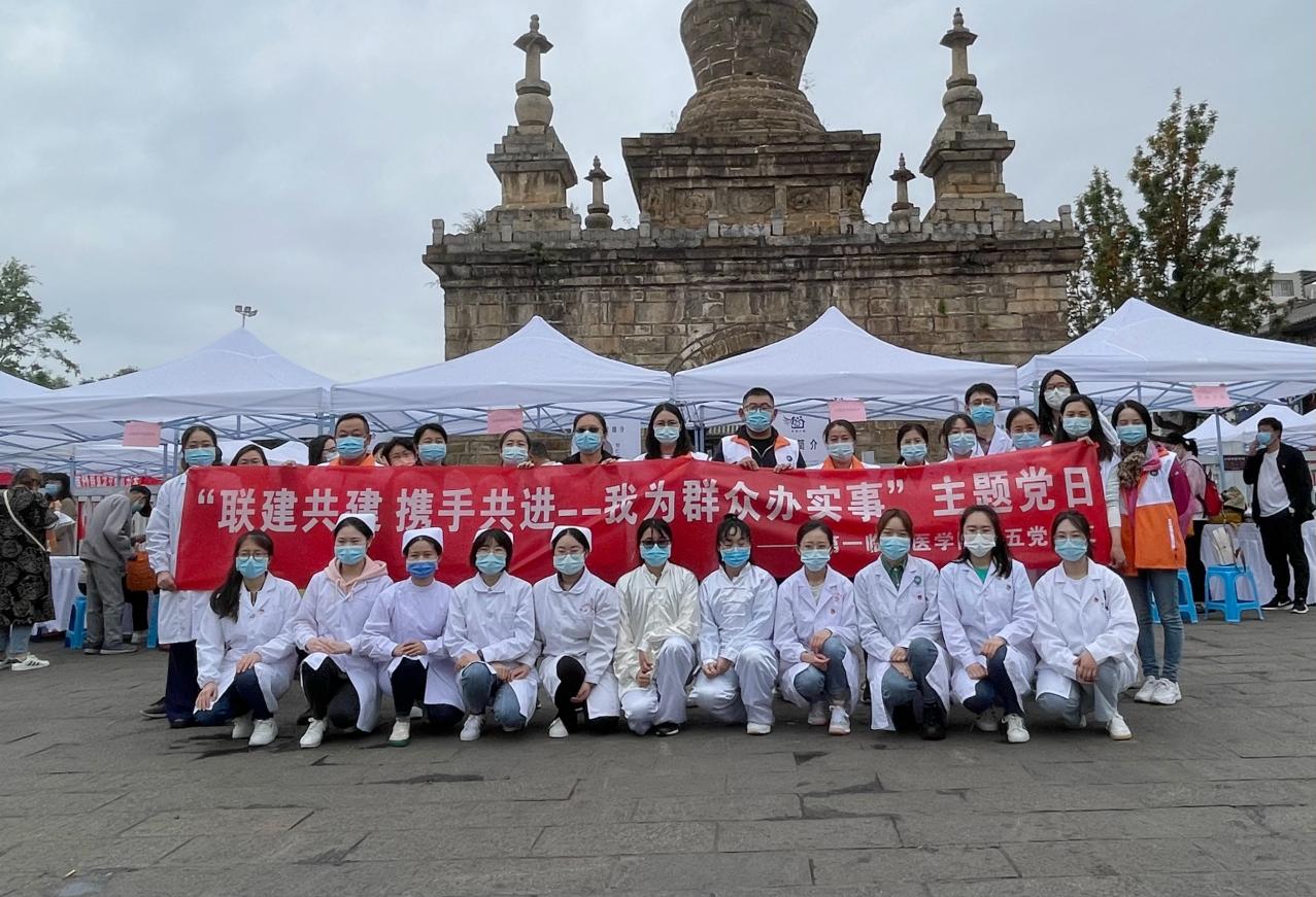 云中讯 5月12日上午 ,第一临床医学院第五党总支联合第四党总支第二临床医学院、护理学院来到官渡古镇金刚塔广场,开展红色义诊主题党日。共建共联,发挥所长,通过红色义诊形式,更好地满足社区居民健康需求,引导群众建立科学、文明、健康的生活方式,用实际行动迎接党的二十大胜利召开。