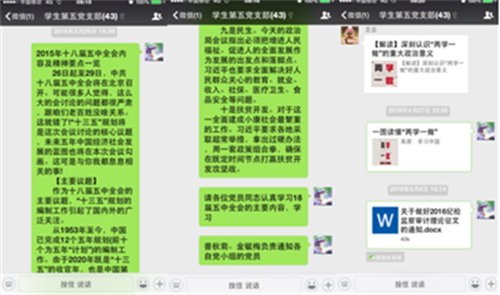 临床医学院学生党总支采取微信群及QQ群集中学习与个人自学相结合的方式,积极开展“两学一做”学习教育,使全体实习生党员在思想上高度重视“两学一做”,认真自学相关材料,在群会议上畅谈感想,会后向党支部提交手写学习心得,并挂在群共享上,供其他党员学习、借鉴。这种创新的学习方式,让“两学一做”学习教育真正落到了实处。