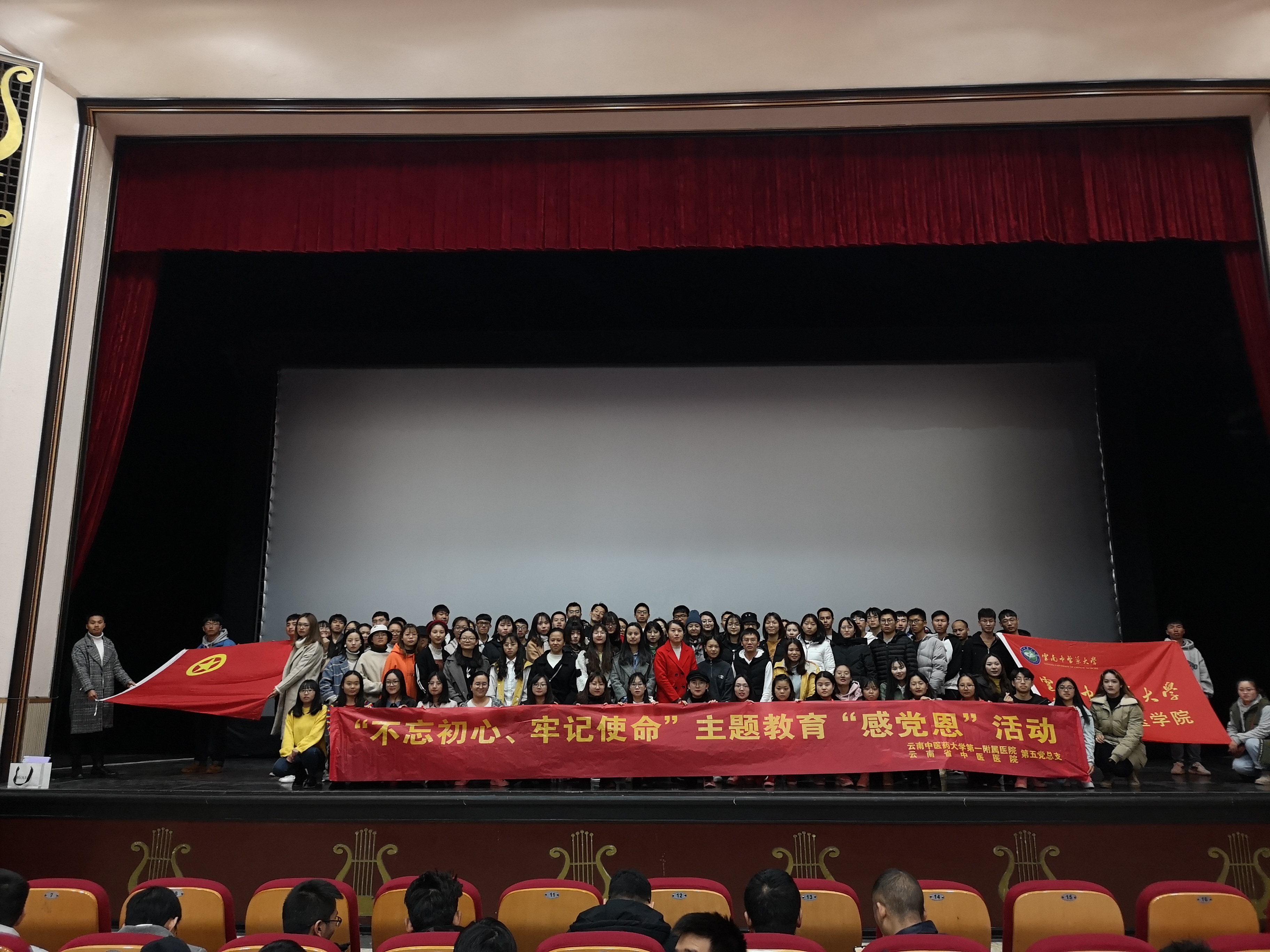 云中讯【通讯员 黄南 张键】2019年12月8日下午,第一临床医学院团总支在昆明市春城剧院开展“不忘初心牢记使命永感党恩”主题团日活动暨学习“党的十九届四中全会精神”主题团课,我院2017、2018、2019级研究生、本科生班团干部及学生会成员共520余人参加。活动由第一临床医学院学生管理办公室老师李欣窈主持。