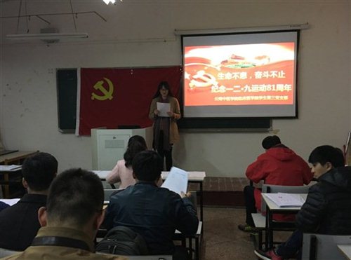 【学生第七党总支第三党支部 王亚东】2016年12月9日临床医学院学生第七党总支第三党支部在冶金校区406教室举行了以“生命不息,奋斗不止”为主题的纪念“一二·九”运动81周年座谈会。支部全体党员及部分共青团员参与此次座谈会,座谈会由支部青年委员李倩雯主持。