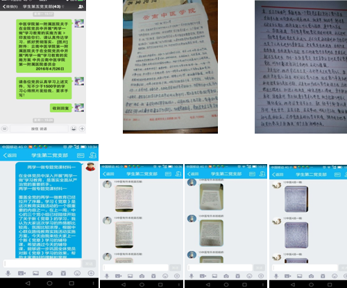 临床医学院学生党总支采取微信群及QQ群集中学习与个人自学相结合的方式,积极开展“两学一做”学习教育,使全体实习生党员在思想上高度重视“两学一做”,认真自学相关材料,在群会议上畅谈感想,会后向党支部提交手写学习心得,并挂在群共享上,供其他党员学习、借鉴。这种创新的学习方式,让“两学一做”学习教育真正落到了实处。