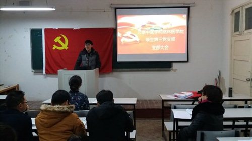 【学生党总支第三党支部 王亚东】2016年12月8日晚8时,临床医学院学生第三党支部在冶专校区408教室召开党支部大会,对王鑫浩等25名同学的发展入党问题进行讨论和表决。党支部书记王萍老师、全体正式党员、25名发展对象参加此次大会。会议由支部副书记王亚东同志主持。