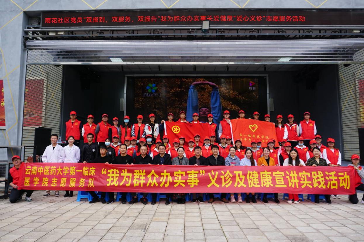 云中讯 2021年10月28日下午,云南中医药大学第一临床医学院团委带领青年志愿者服务队到雨花社区开展“中医进社区”社会实践服务活动。60余名志愿者为雨花社区群众提供健康咨询及量血压、推拿、打八段锦等健康义诊服务,并向社区群众发放冬季中医养生相关知识宣传手册。民生无小事,枝叶总关情。自“学党史、强信念、跟党走”学习教育开展以来,第一临床医学院团委把落实“我为群众办实事”作为检验学习成效的试金石,并通过中医药特色优势与志愿服务活动有机结合,践行“一切为了人民健康”的初心和使命。