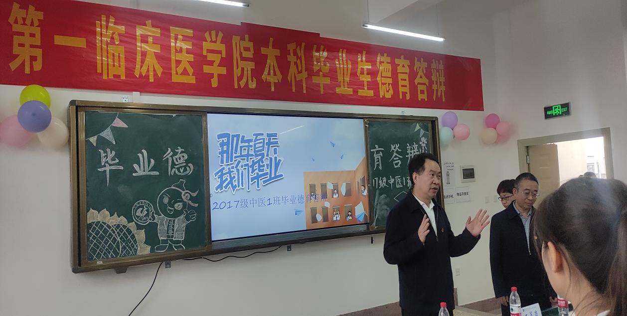 答辩当天, 校党委书记王翠岗、 副校长温伟波亲临各班进行指导 ,希望各位毕业生在答辩中尽情展现自己5年的收获和成长,并嘱托毕业生们在新的人生征途上要传承岐黄仁术,弘扬大医精诚,勇于担当,青春奉献新时代。
