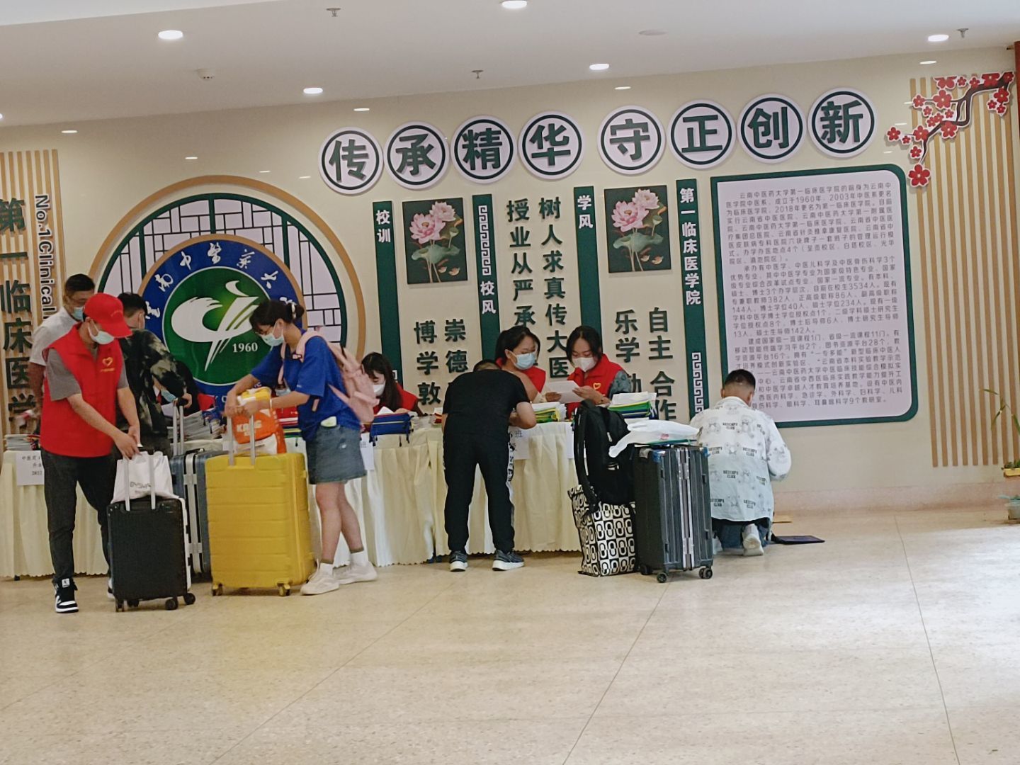 骄阳下,第一临床医学院的老师们带头指挥接引新生的队伍;第一临床医学院的学长学姐们忙碌的身影;一辆辆满载新生的校车,无处不体现着大家对新生的关怀。