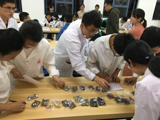 本次比赛较以往相比难度增加,内容丰富,形式多样,将辨药、识药与临床接诊、合理用药等有机结合,考核同学们的综合能力。比赛分三轮进行,第一轮辨识中药饮片和中药图片,考核参赛者辨识中药的基本能力素质;第二轮“盲人辨药”,由参赛代表在蒙眼的情况下,通过闻、尝、摸辨识中药;第三轮“辨证施治”,通过接诊,根据患者主诉做出诊断,开出代表方,并从众多药品中找出选方所需中药。