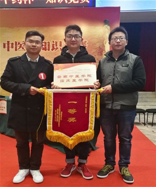 【临床医学院学生管理办公室 李欣窈】在2016年12月17日举行的云南第三届“中医杯”和“中药杯”知识竞赛中,我院学生代表队余江罗、杨德塑、王正祥三名学生沉着冷静、从容应对,最后以206分的高分,勇夺本届“中医杯”冠军。