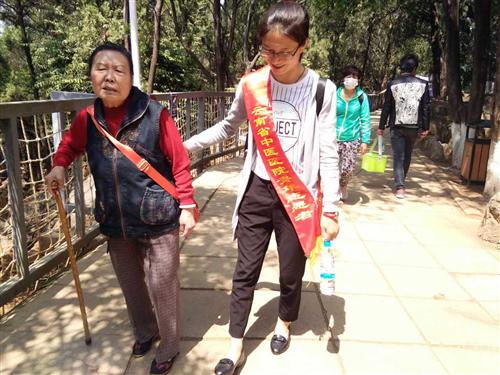 【临床医学院团总支、学生会:道芳瑞、李欣窈】2017年4月12日,临床医学院志愿者到圆通山开展 “爱伴夕阳 陪您同行”志愿者活动。