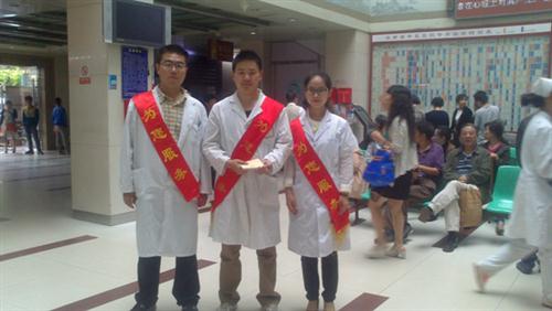 【研究生科 华培兴】2014年6月12日,临床医学院2011级研究生临毕业前夕,应临床医学院“毕业前,为学院做一件好事”的要求,在云南省中医医院门诊综合楼1楼大厅举行了志愿服务活动。参加此次活动的共7名毕业班研究生,志愿者们本着“奉献、有爱、互助”的服务精神,凭借自己的爱心、借助自己的专业知识为广大的患者提供健康知识宣传,并积极耐心地为患者提出的问题进行详细回答。