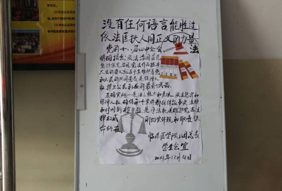 12月5日,组织志愿者在教学楼一楼以“做好事、做善事、做志愿者”为主题开展了各项宣传教育活动。在白塔校区楼道张贴禁毒防艾、依法治国、志愿服务等宣传海报,组织全体师生在“做好事、做善事、做志愿者”横幅上签字并将其悬挂于教学楼下,大力宣传依法治国、禁毒防艾相关知识,以及关爱他人友爱互助的服务理念和志愿精神,加强对广大师生的教育,积极营造“我为人人、人人为我”的良好社会氛围。在短短的几个小时里横幅上已被同学们签满了,这一个个签名既是一种承诺,也是一份责任。