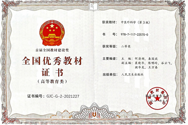 主编国家规划教材11部,《中医外科学(第3版)》荣获“全国优秀教材(高等教育类)二等奖,副主编国家规划教材30部,主编出版本土教材27部,其中《中西医临床儿科学》获云南省优秀教材。1人荣获全国教材建设先进个人奖。