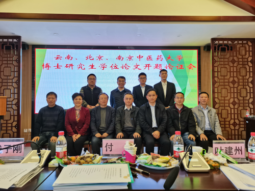 此次会议分两个阶段进行,第一阶段由云南中医药大学第一临床医学院研究生管理办公室主任周晓娜主持,在周主任的主持下,四位博士研究生的导师秦国政教授、云南中医药大学研究生处处长孙雪萍先后发表了重要讲话,开题报告会秘书李焱风副教授隆重介绍了此次会议的评审专家组成员,专家组由付义教授、钱子刚教授、叶建州教授、杨恩品教授、袁嘉丽教授组成,专家组推举昆明市中医医院副院长付义教授担任组长。云南中医药大学第一临床医学院男科方向在读研究生及相关人员参加了此次会议。