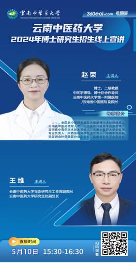 为满足广大博士研究生考生对招生咨询的需求,搭建考生与院校沟通桥梁。2024年5月10日下午第一临床医学院依托“哔哩哔哩、微博”等媒体平台开展了云南中医药大学 2024 年中医学博士研究生招生线上宣讲会。