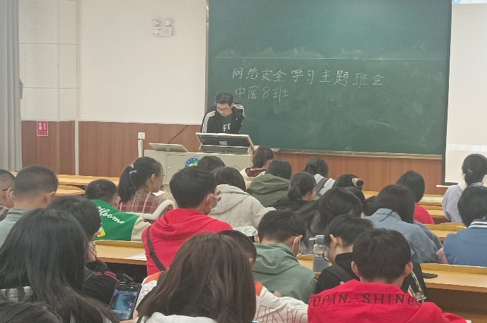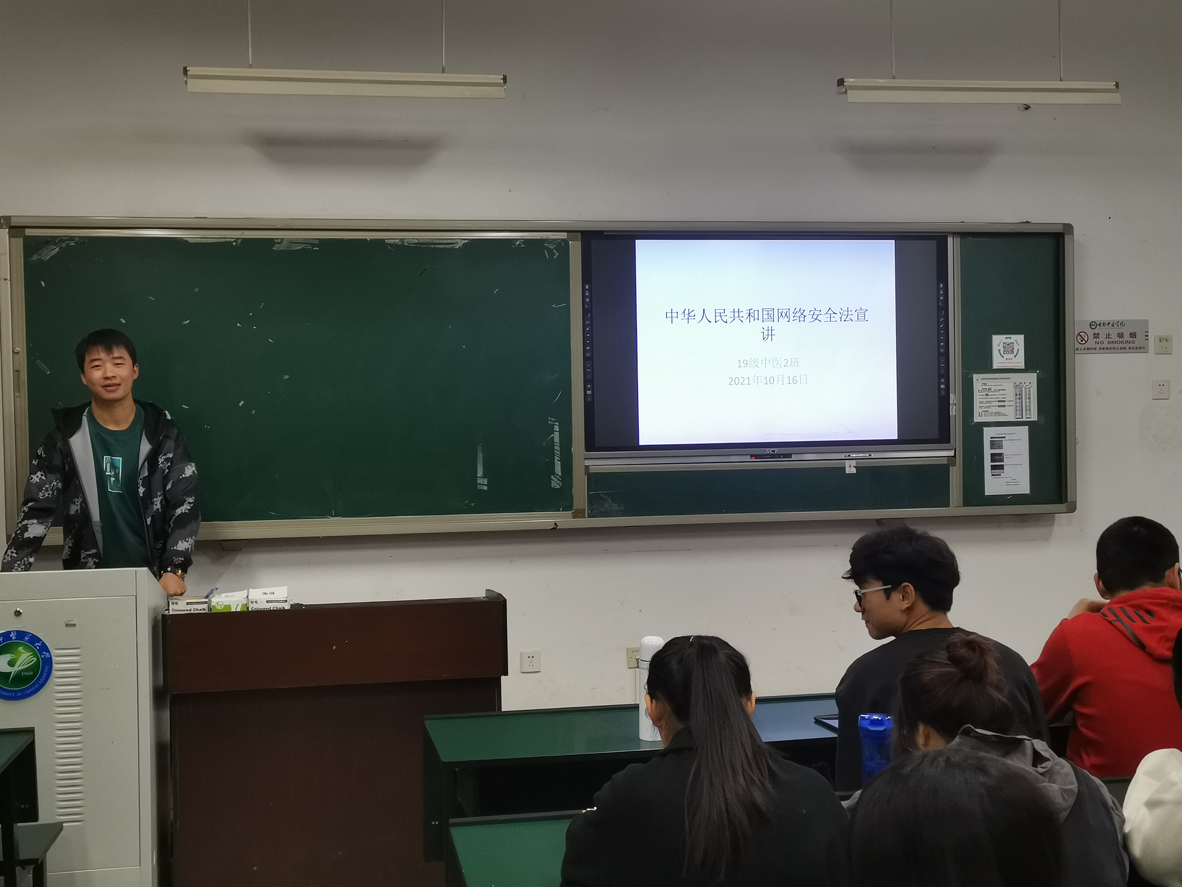各年级、班级结合当前疫情防控要求召开主题班会, 2018-2021 级以线下形式为主, 2017 级在外实习学生以线上活动为主。主要 活动内容有 : 观看学 校提供网络安全视频; 将学校提供网络安全宣传材料制作成随身手册发放到全体本科生(实习生以电子版形式发送),做到随时翻阅随时警惕; 学习《中华人民共和国网络安全法》。