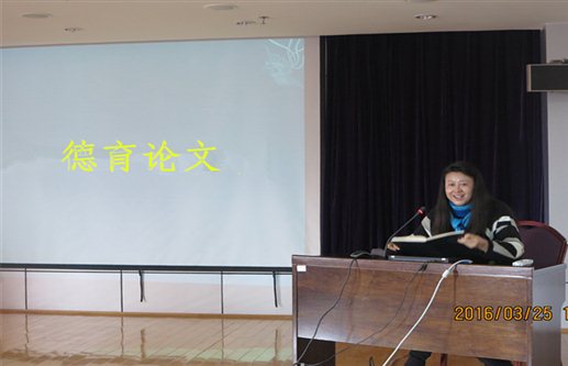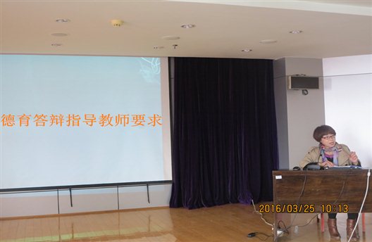 接着,刘仁馨副处长对我院的德育论文答辩工作进行了指导。刘副处长从德育答辩工作开展的背景、学校的德育答辩工作、指导教师要求、答辩学生规范等方面进行了全方位、理论加案例的讲解,并摘选了四篇优秀德育论文的部分内容,从构思精巧、立意深远、才华横溢、中医与德育融合等多角度进行了展示,为全体参加培训的教师,上了一堂实实在在的德育论文撰写、指导课。