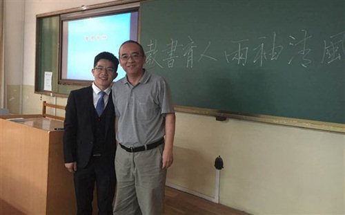 同学即兴为老师在黑板上题字,并与评委老师合影留念