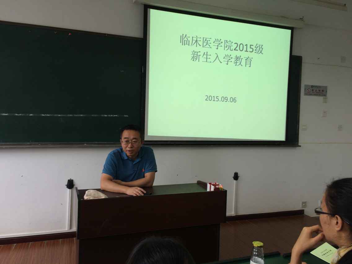 按照学院关于《2015级本科新生入学集中教育方案》的通知要求,为使学生保持心态健康、意志昂扬的良好精神状态应对新的学习和生活环境,临床医学院于2015年9月6日对2015级新生开展了专题入学教育。我院院长温伟波、副院长赵荣、学生党总支书记王云分别就职业规划、专业发展方向、思想政治教育对我院2015级新生作了专题教育。