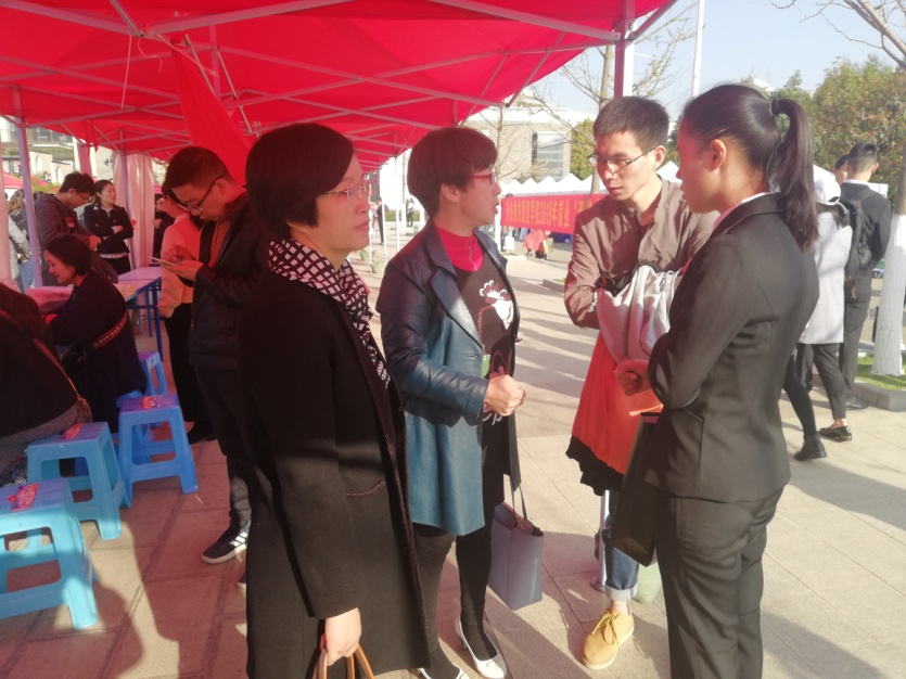 学校王翠岗书记、祁苑红副校长等领导亲临现场,与用人单位亲切交谈,学校就业部门、学生处、教务处及各二级学院的领导也都深入招聘会现场对用人单位的招聘需求、学生应聘意向等情况进行深入了解。