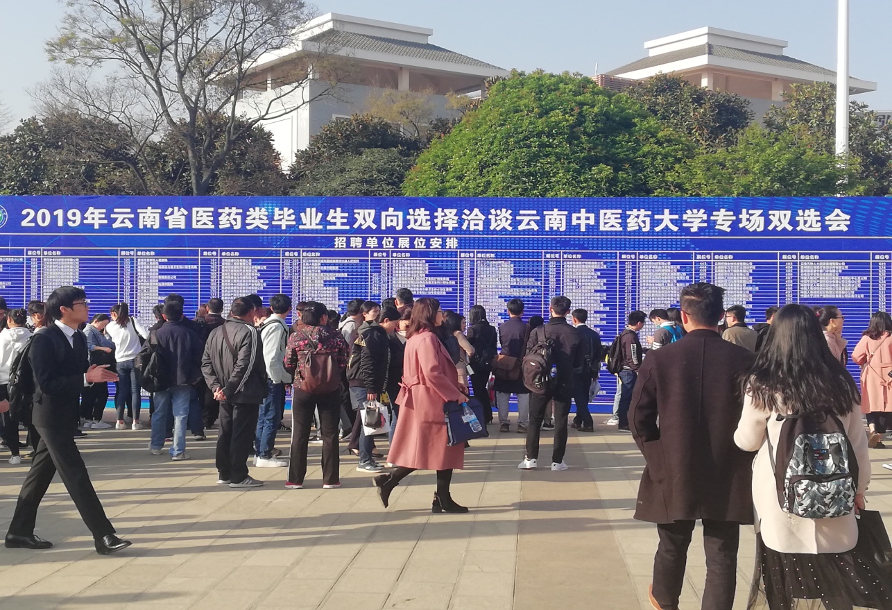 云中讯(通讯员 李欣窈)2019年3月13日,云南省医药类毕业生双向选择洽谈云南中医药大学专场双选会在我校呈贡校区五行广场举行,约500多家用人单位到校招聘,提供岗位近千个。第一临床医学院积极组织毕业班参加,共计50多名研究生,609名本科毕业生参加了双选会。