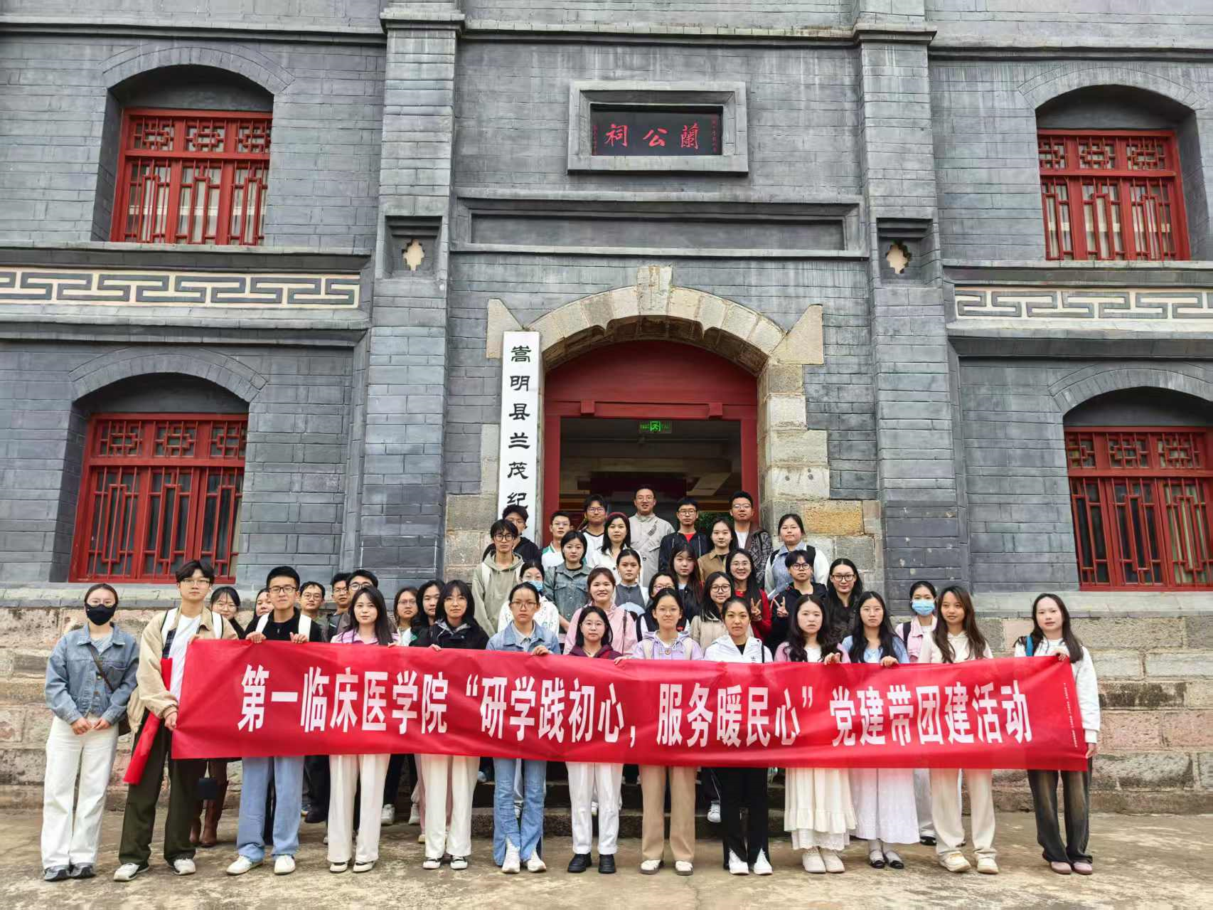 为引导中医学子厚植为民情怀、强化使命担当,结合本科特色佩衡班人才培养方案,2025年5月24日,第一临床医学院组织师生党员及2022级佩衡班学生共40人,前往昆明市嵩明县开展“研学践初心,服务暖民心”党建带团建活动。师生们先后走进兰茂纪念馆、东村红色教育研学基地,以红色研学筑牢信仰根基,并通过义诊服务将专业知识转化为惠民实践,在历史与现实的交织中诠释医者初心。