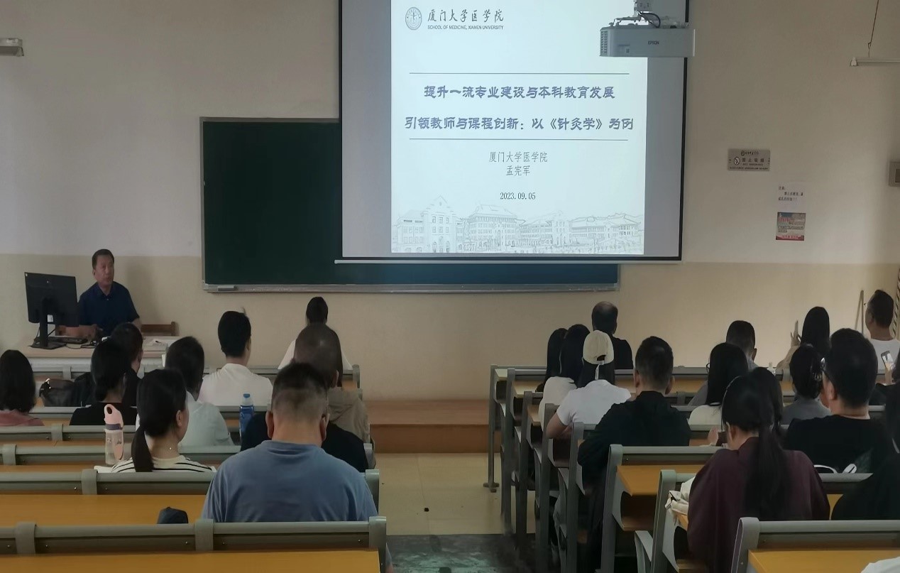 云中讯(通讯员 李玲玲)为进一步做好本科专业“增A去D”规划工作,提升一流专业建设,推动一流本科专业和课程建设发展,引领广大教师以现代教学理念为引领,以教学模式创新为手段,转变教育教学观念,提升教学能力,2023年9月4日、5日,我院特邀厦门大学医学院副教授孟宪军、山西中医药大学第二临床学院副院长郝重耀教授做专题培训。