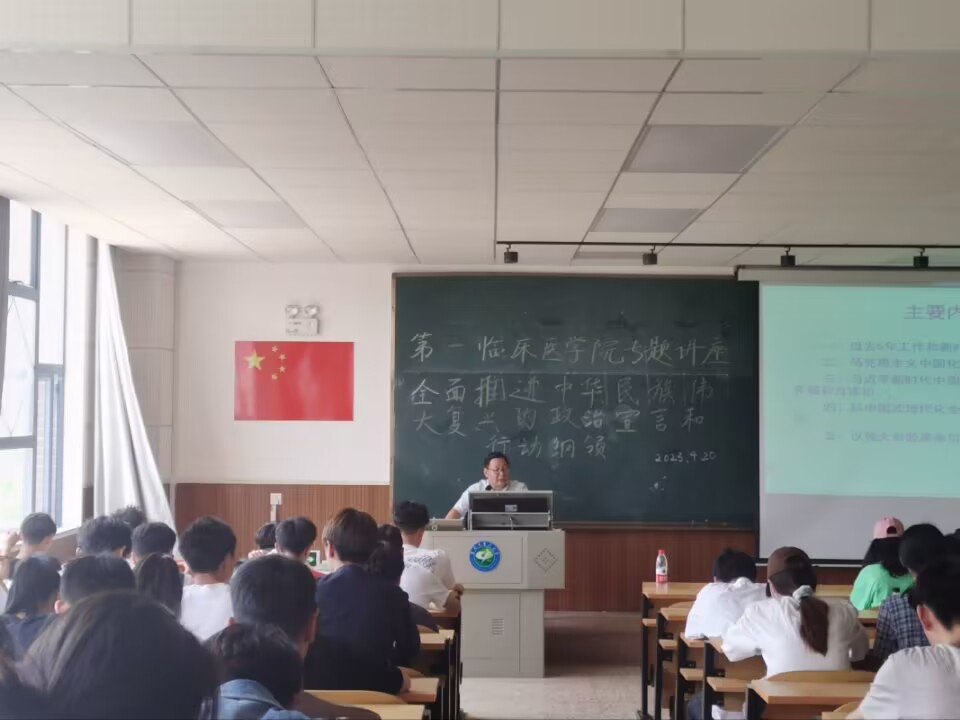 本次讲座由马克思主义学院张根生老师主讲,第一临床医学院21级全体同学参加。张根生老师引领大家共同学习全民推进中华民族伟大复兴的政治宣言和行动纲领,并介绍了我国过去五年工作和新时代十年的伟大变革。推进了同学们对于党的二十大精神的认识与理解。