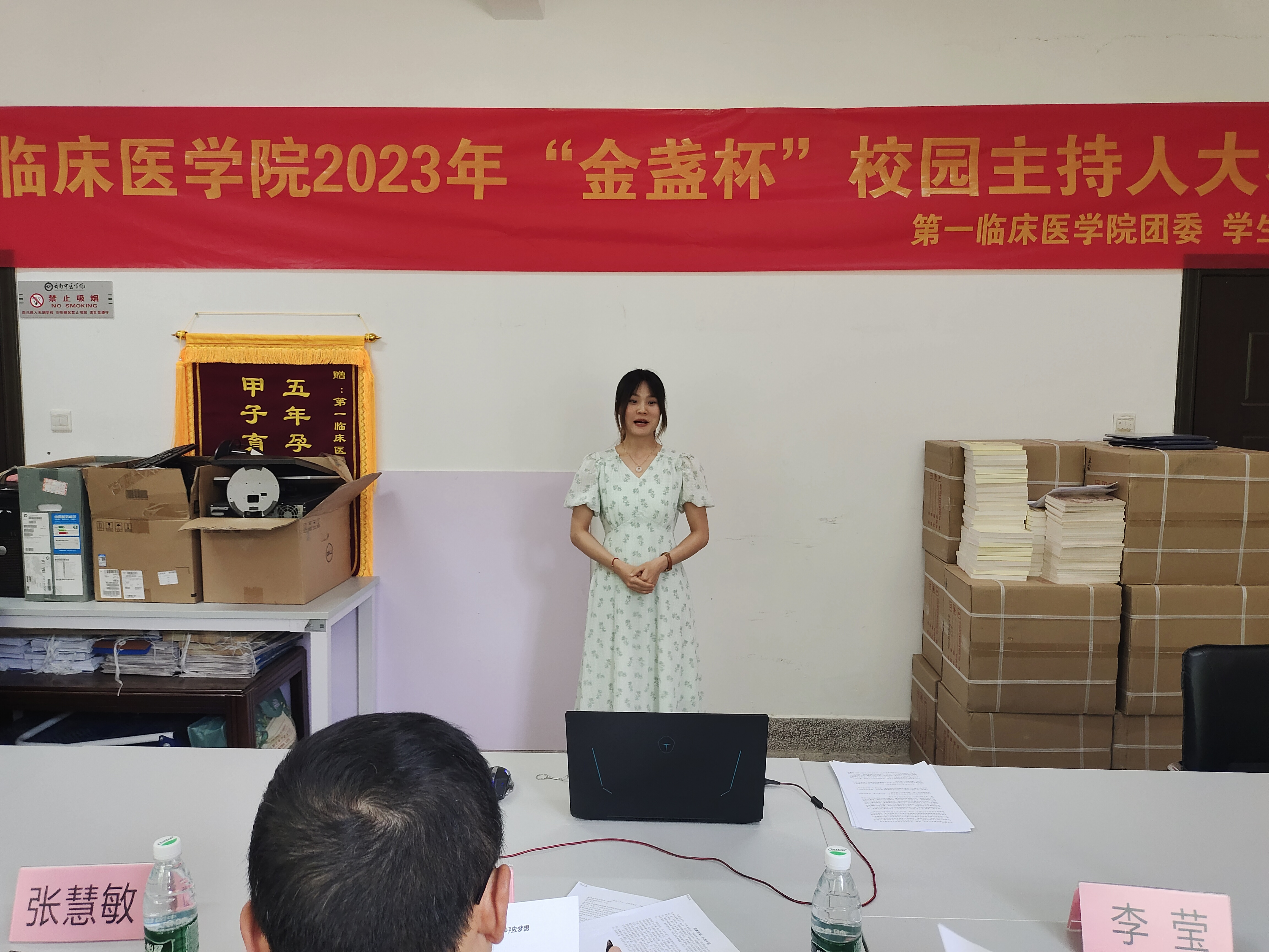 云中讯 (通讯员 庞舒锦 吴欣晔)为学习宣传贯彻党的二十大精神,响应中国共产党号召,进一步丰富校园文化生活,并向广大爱好主持的同学提供展示风采的舞台,第一临床医学院于2023年5月11日在呈贡校区精诚楼227会议室举办院级主持人比赛。