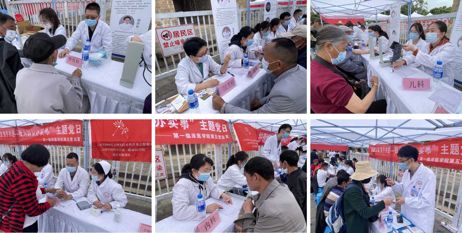 云中讯 5月12日上午 ,第一临床医学院第五党总支联合第四党总支第二临床医学院、护理学院来到官渡古镇金刚塔广场,开展红色义诊主题党日。共建共联,发挥所长,通过红色义诊形式,更好地满足社区居民健康需求,引导群众建立科学、文明、健康的生活方式,用实际行动迎接党的二十大胜利召开。
