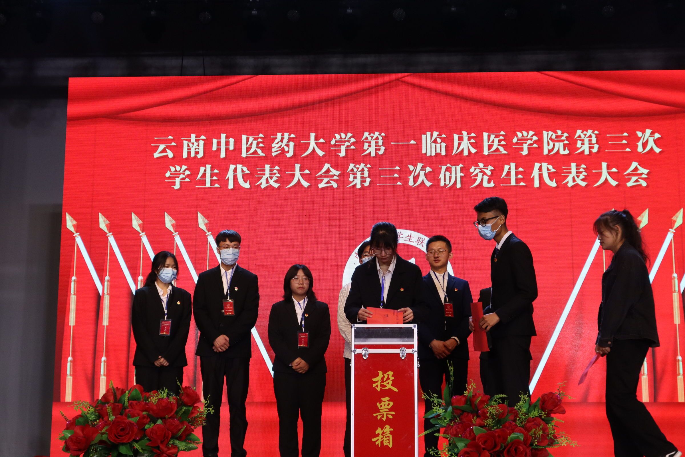 云南中医药大学第一临床医学院第三次学生代表大会、第三次研究生代表大会在团歌声中胜利闭幕。