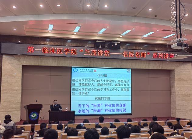 秦国政教授引经据典并结合自身求学的真实经历从定志、兴趣、选向等多个方面给大家讲述名医之路应该如何延伸。勉励青年学子 “学子当志存高远,追求卓越,不仅要立志成为一名名医,更要立志用心问学,掌握良好的学习方法。”并教育引导学生“欲成学者,必先为人。为医之道,贵在厚道,诚实、守信、有礼、仁义、宽人、善行、感恩。”