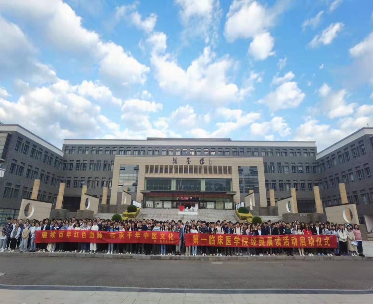 启动仪式上,第一临床医学院2021级所有本科新生在2021级博士生高林带领下齐声诵读《< 黄帝内经?素问>上古天真论篇第一》,郎朗读书声响彻五行广场。同时,在今后两个月时间内,每周一至周五早晨,所有2021级本科新生将以集中诵读,分散阅读等方式,持续开展晨读活动。