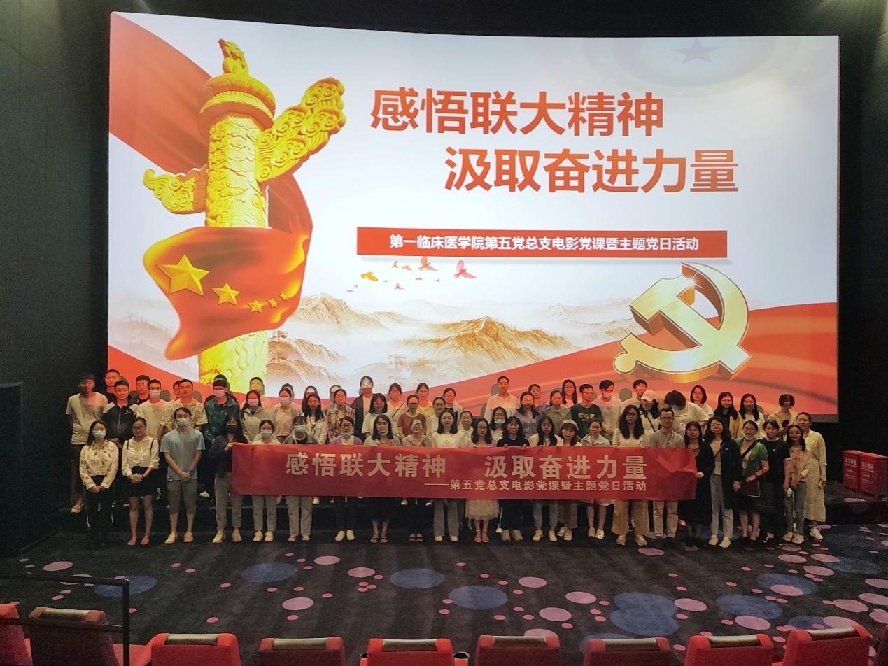 云中讯 为丰富党史学习教育内容,拓展学习形式,推进党史学习教育走深走实,切实做到学党史、悟思想、办实事、开新局,6月25日,第一临床医学院党委第五党总支组织开展电影党课观看纪录电影《九零后》。