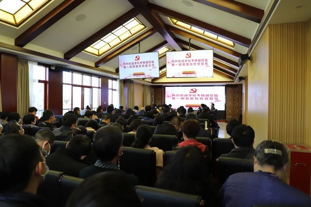 云中讯 根据学校年终考核工作安排,2020年12月11日下午,受第二检查考核组组长熊磊委托,学校第二检查考核组一行6人到第一临床医学院(第一附属医院)对全面从严治党工作及业务业绩情况等进行综合检查考核。考核主要通过听取综合情况汇报、民主测评及查阅台账等方式进行。医院党政领导,党总支书记、副书记,支部书记,中层干部及职工代表参加了考核会,会议由医院党委书记陈燕溪同志主持。