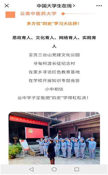追寻红色足迹,实地学习党史: 组织所辖师生党员们到寻甸柯渡长征纪念村活动、参观朱德故居……其中,寻甸柯渡长征纪念村活动还被《中国大学生在线》报道。