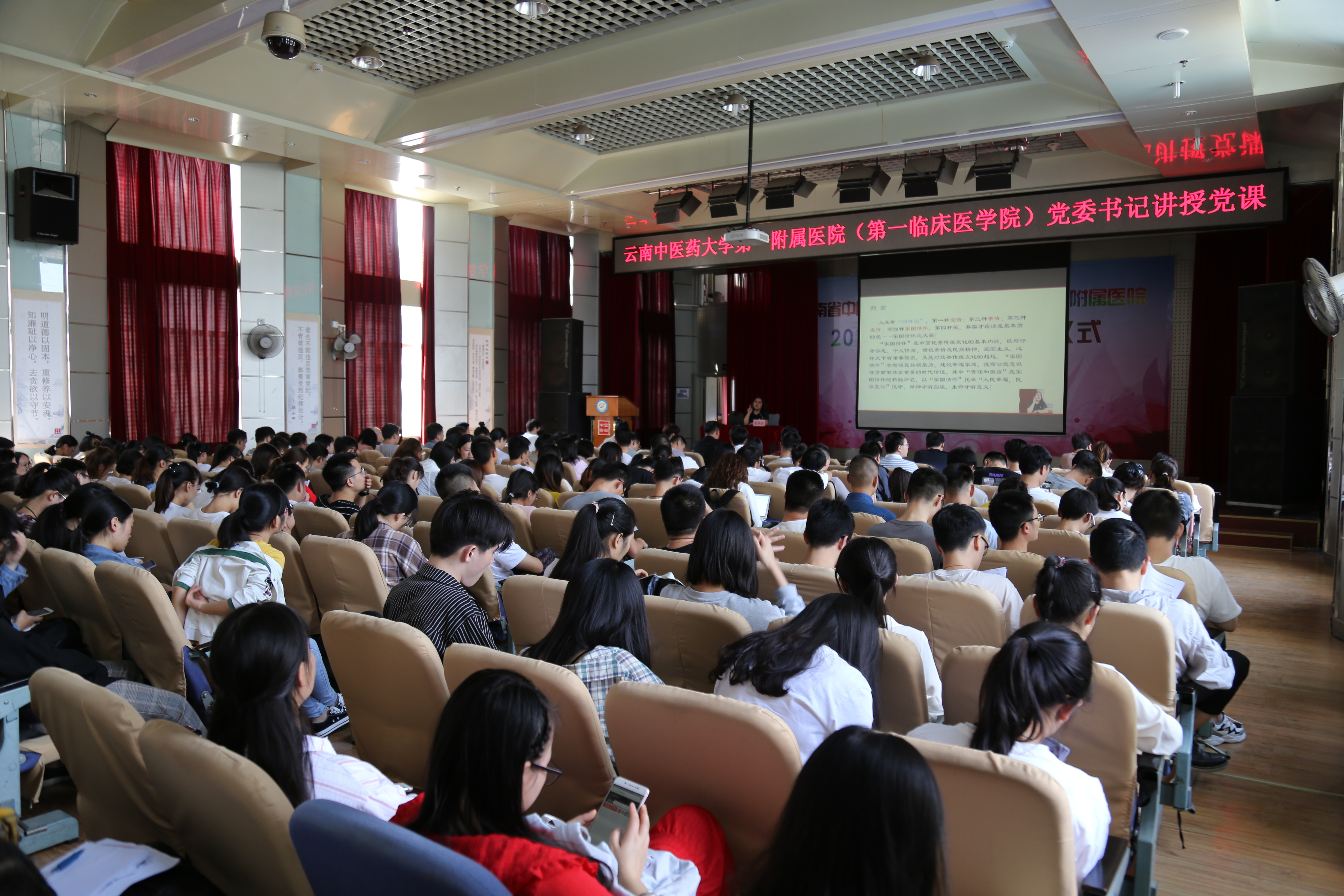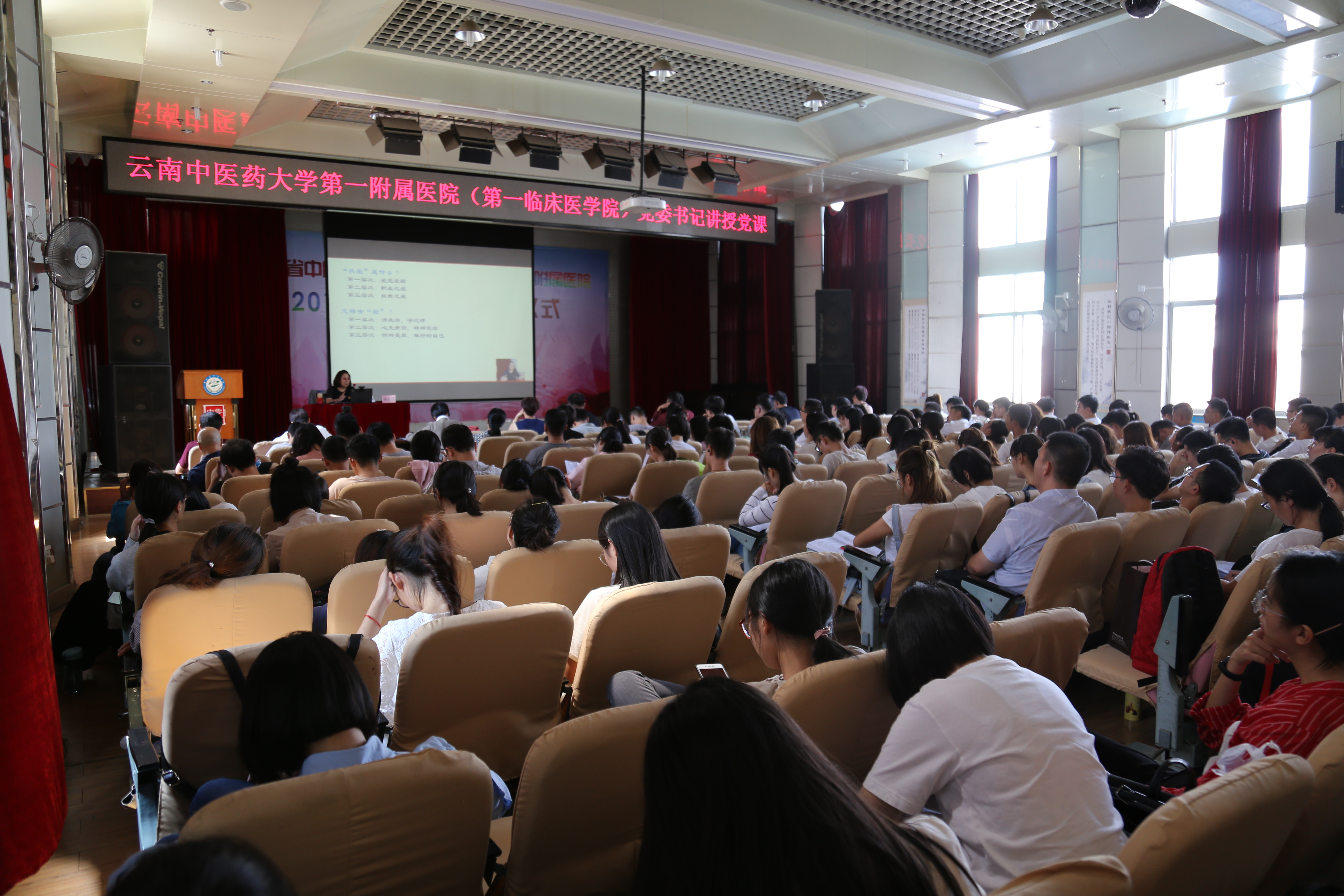 云中讯(通讯员许辉)9月16日下午,云南中医药大学党委委员、附一院党委书记陈燕溪同志为第一临床医学院2019级新生以及党总支书记、副书记共计250余人讲授题为《在“热爱”中书写精彩人生》的思政课,思政课由附一院党委委员、副院长赵荣同志主持。