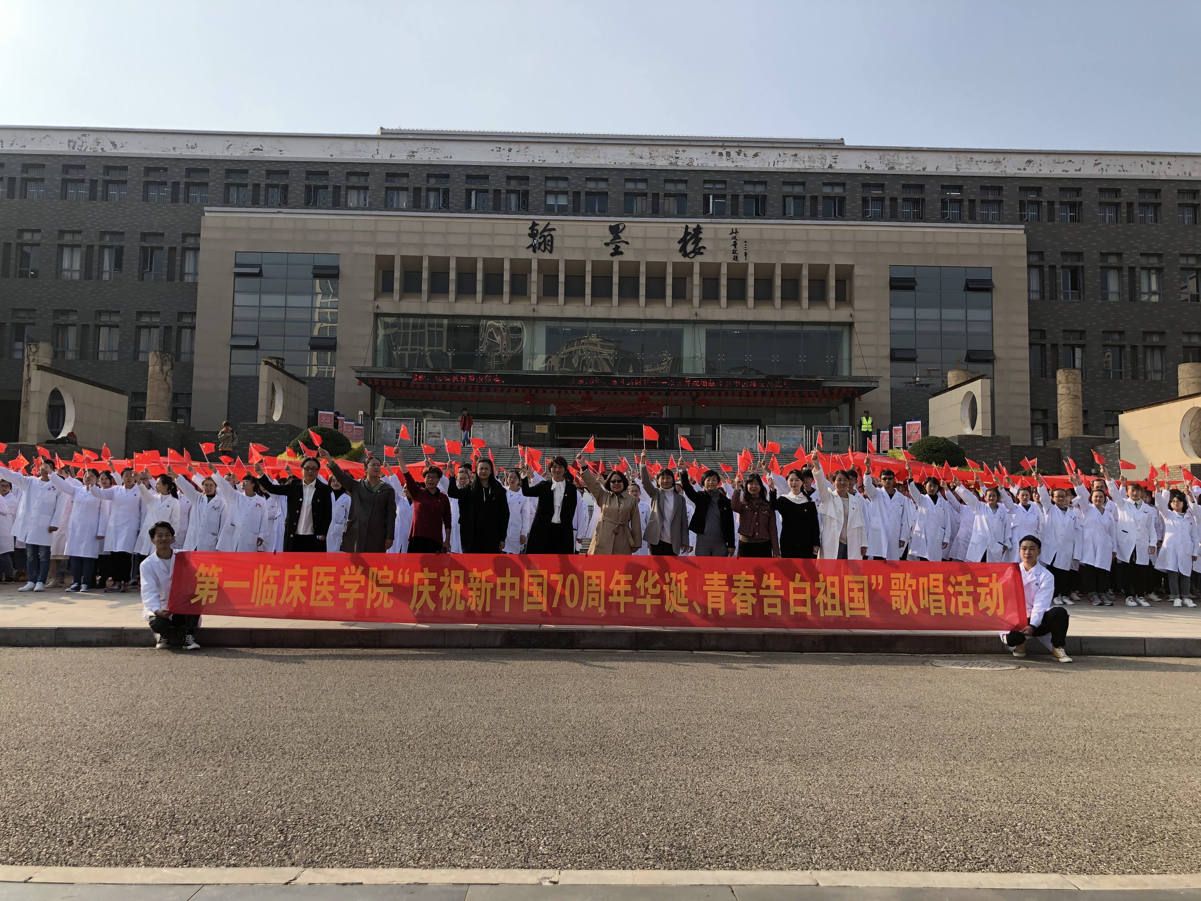 云中讯(通讯员 赵丽、李欣窈)为庆祝新中国70华诞,2019年09月26日下午第一临床医学院在翰墨楼前组织开展了“庆祝新中国70周年华诞·青春表白祖国”歌唱活动。我院党委陈燕溪书记、徐莉娅副书记、王云副院长、赵荣副院长,学生管理办公室全体工作人员及2016级、2019级师生共计900余人参加了活动。