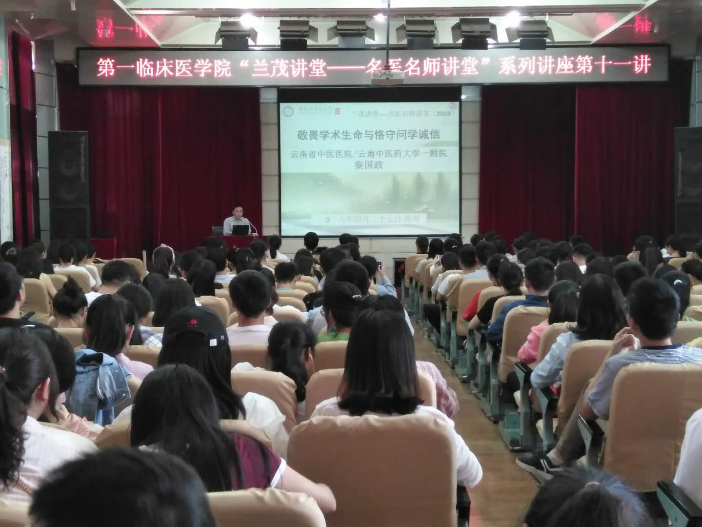 云中讯(通讯员:代小艳 徐思敏) 为在研究生科研能力培养过程中严格规范科研行为,恪守学术诚信。2019年4月25日下午,在云南中医药大学第一附属医院5楼会议,云南中医药大学学术委员会主任,云岭学者秦国政教授做客“兰茂讲坛”——名医名师系列讲座,开展以“敬畏学术生命与恪守问学诚信”为主题的讲座。讲座由辅导员李欣窈老师主持,第一临床医学院2017级、2018级300余名研究生聆听讲座。
