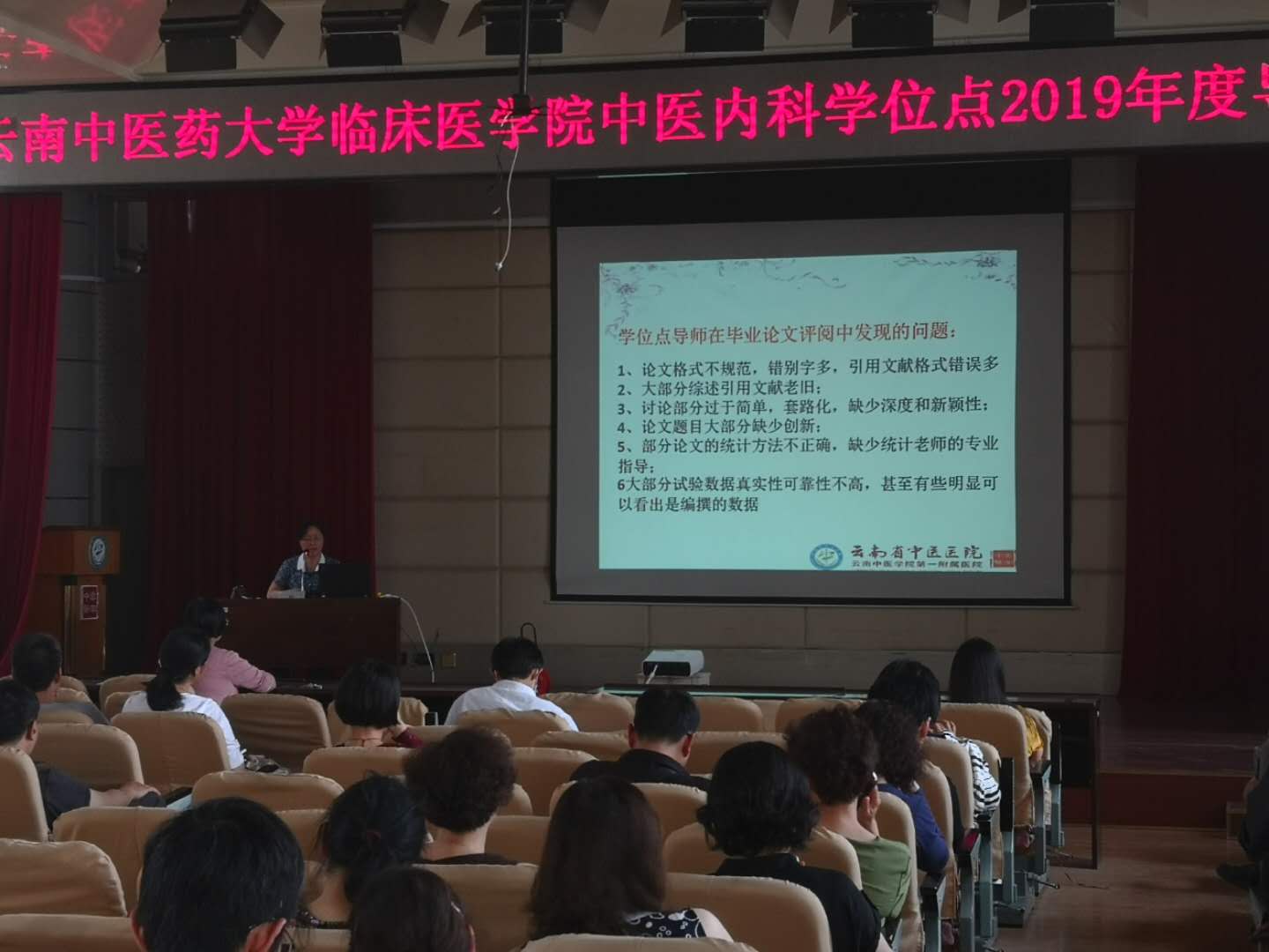 会议开始后,首先由彭江云教授对学位点基本情况和2018年度工作及2019年工作计划做了简要介绍和布置,并和全体导师一起学习了《云南中医药大学硕士生导师管理条例》等文件。紧接着由赵荣副院长对中医内科学位点2018年度的工作进行简要点评,肯定了学位点2018年度在学位点建设工作方面取得的成绩。随后由赵荣副院长组织全体导师进行自由讨论交流环节。赵荣副院长针对院内外导师管理、学生管理工作方面,对多位导师的提问一一作了详细解答。会议最后由教管办王萍老师及研管办杨隽老师针对我院中医内科学、中西医结合临床内科方向专业硕士研究生培养、管理等方面的工作重点、关键问题进行了进一步解答,对学校学生管理工作的下一步计划也作了详细布置。