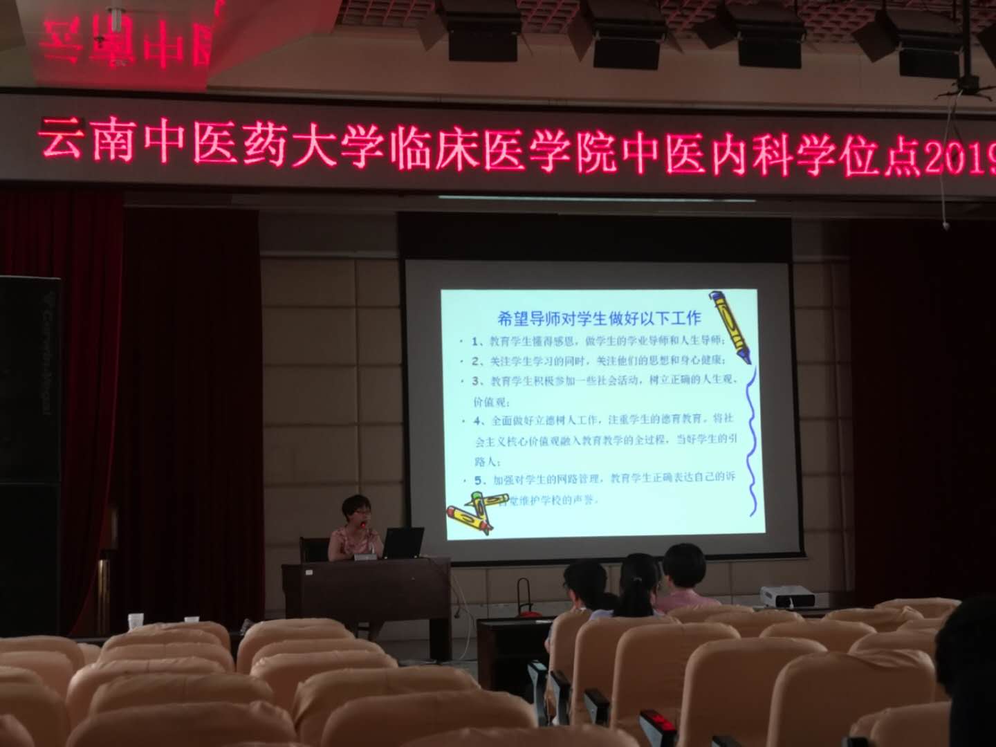 云中讯(通讯员 孙朝辉)云南中医药大学第一临床医学院中医内科学位点2019年度导师培训会于5月5日(周日)下午15:30在第一附属医院光华院区2号楼5楼会议室顺利召开。培训会由学位点负责人彭江云教授主持,赵荣副院长,教管办王萍老师、研管办杨隽老师出席。