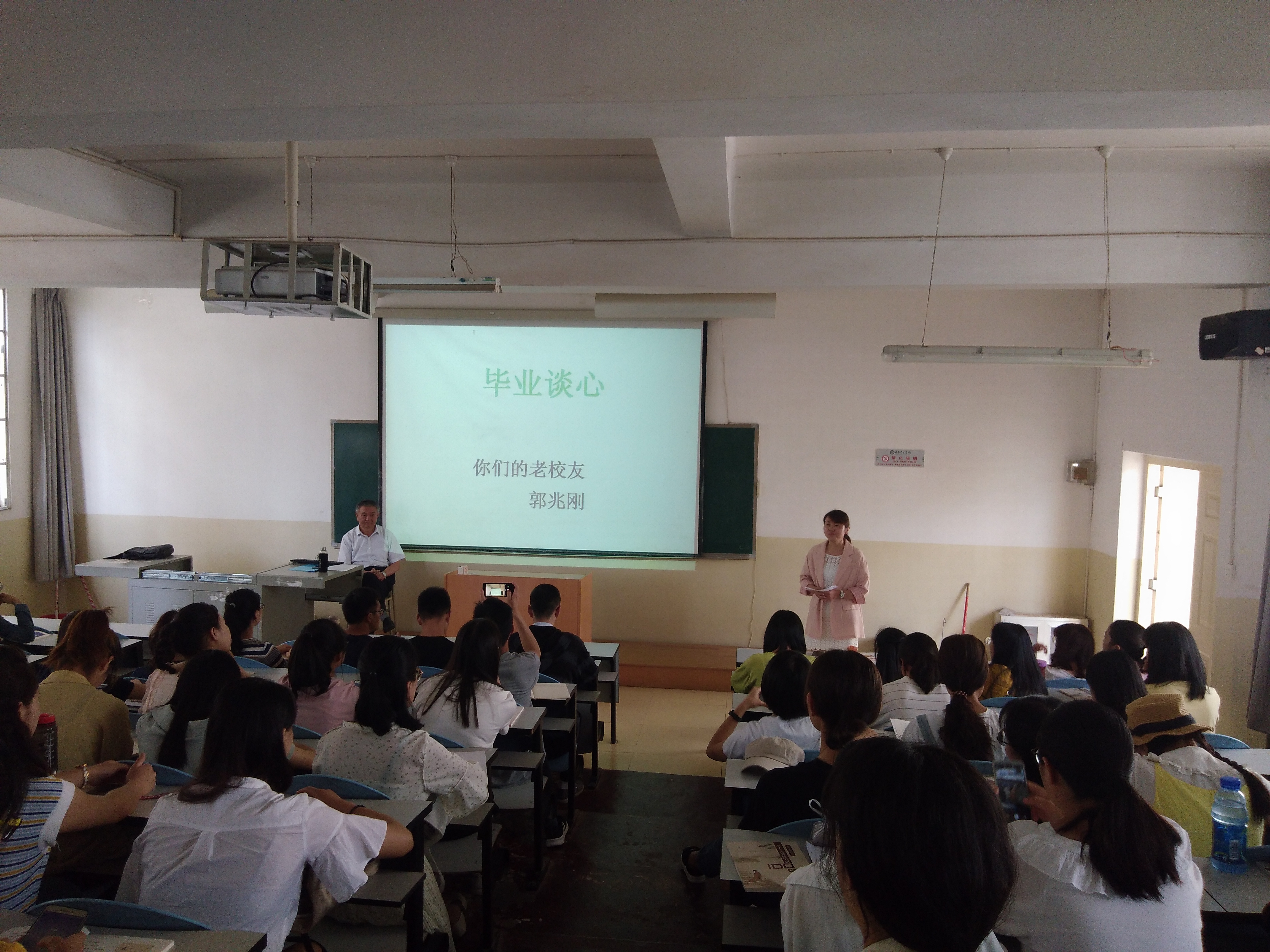 云中讯(通讯员 李欣窈) 在毕业生离校之际,为了上好校园最后一堂课,2019年4月25日下午,第一临床医学院特邀教务处郭兆刚教授做客“兰茂讲坛”——名医名师系列讲座,与120多名毕业班同学一起“毕业谈心”。讲座由学生管理办公室李欣窈老师主持。