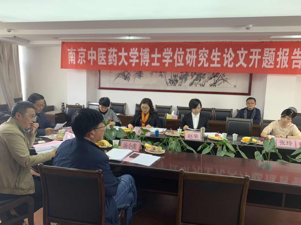 2019年3月28日,南京中医药大学临床医学院 博士 研究 生学位论文开题报告会 在云南中医药大学第一附属医院门诊6楼会议室召开,会议分别对5位南京中医药大学在职博士研究生的博士学位论文开题报告进行了评议论证。温伟波教授所指导的中医内科学专业房昉所汇报题目为《基于AMPK/ROS/JNK信号通路探讨健肝消脂方改善胰岛素抵抗治疗非酒精性脂肪性肝病的机制》,郭利华教授所指导的中医内科学专业赵瑞莲所汇报题目为《倍用淫羊藿疏调汤治疗脾肾阳虚型肺癌的临床研究及淫羊藿作用机制探讨》,赵荣教授所指导的针灸推拿学专业杨隽所汇报题目为《基于代谢组学探索经络辨证逆针灸治疗乳腺非典型增生作用机制》,秦国政教授所指导的中医外科学专业耿立果所汇报题目为《益气补肾活血法对精索静脉曲张术后精子质量的影响及机制探讨》,姜丽娟教授所指导的中医妇科学专业牛红萍所汇报的题目为《基于 TGF-β1/Smad 信号通路研究调肾通络方防治宫腔粘连术后再粘连的临床疗效及作用机制》。南京中医药大学多位在职博士研究生及云南中医药大学多位全日制中医内科学硕士研究生参加了会议 。