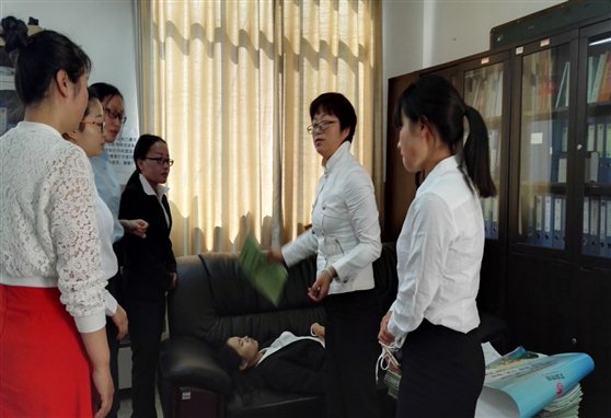 由于天气炎热,教室空气流通不畅,我班一名女同学在答辩过程中血压降低,出现头昏、想吐症状。随即在赵副院长的指导校,班主任及部分同学将该同学送往附近办公室休息,期间赵副院长为该同学号脉诊断病情,并用中医穴位急救知识悉心照顾,让我班同学迅速好转。这件事给我们的德育答辩上了印象深刻的一课,在感动老师带给我们温暖的同时,也激励着我们要恪守医德,勤勉践行,努力实现自己的人生价值。