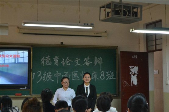 人间最美四月天,春暖花开的季节,我们迎来了毕业德育论文答辩。2018年4月24日上午,我班德育论文答辩在白塔校区415教室举行,此次答辩有幸邀请到临床医学院副院长赵荣教授、学生管理办公室辅导员王应芳、杨玉庭老师担任评委。答辩由班主任李欣窈老师主持,全班58名同学参加了答辩。