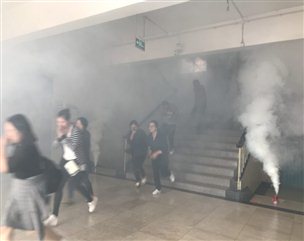 疏散逃生演练于9:50正式开始,在警报响起后,16个班级800余名学生,在保卫科室人员、班主任、辅导员、任课教师和消防疏散引导员的带领下,4分钟内按照预定的疏散路线,全部从各教室安全撤离到指定疏散集点(白塔校区蓝球场)。演练中,同学们互帮互助、井然有序,老师们组织到位,保障有力使演练达到了预期目的。