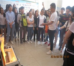 演练结束后,在工作人员的示范下,同学们争先恐后操作灭火器,对于操作不当之处,工作人员反复、耐心进行指导,并教授了灭火器使用的口诀“一摇、二拔、三对、四压”,要求同学要站在上风口,在确保个人安全的前提下,再实施灭火操作。