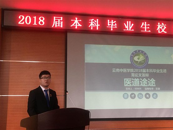 2018年5月22日晚,2018届本科毕业生校级德育答辩会,在呈贡校区崇德楼122会议室举行。校党委书记王翠岗,校党委副书记荀传美,学校副校长祁苑红等领导莅临答辩会现场。临床医学院两名毕业生代表参加了此次校级德育答辩会。