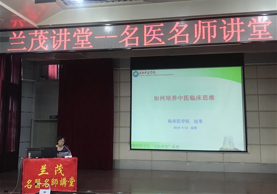 2018年4月13日下午14:30,临床医学院“兰茂讲堂-名医名师讲堂”系列讲堂第十讲在附一院一号住院楼5楼会议室开讲。此次讲座特邀临床医学院副院长、硕士生导师赵荣教授,为同学们带来题为《中医临床思维》的精彩讲座。讲座由学生管理办公室王萍副主任主持,300多名研究生及部分医护人员参加了讲座。