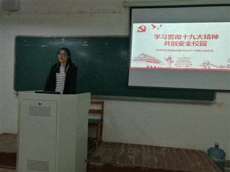 学生第一党支部保卫委员李倩雯同志还从“临危逃生、道路交通安全、校内外活动安全、住宿生安全、食品药品安全、校园暴力安全”等方面开展安全防范教育,积极宣传国家有关法律法规,进一步提高党员同志们的法制意识和安全防范意识,号召广大党员同志共同创建一个和谐文明的校园环境。