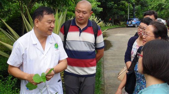 7月18日上午,在医院玉腊波副院长和教学科岩罕单老师带领下,观摩学习各临床科室傣医特色治疗,了解科室教学开展情况,学习医院内种植的傣药物植株;随后玉副院长作 “傣医药的特色应用与发展优势”的专题介绍。